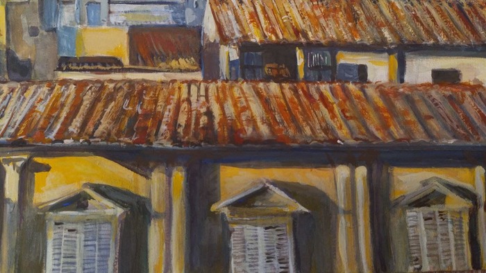 Если вдаваться в подробности и прорисовывать - она перетягивает на себя внимание, я решила сделать акцент и фокус все же на деталях купола, и оставить, хоть и на переднем плане, черепицу вот такой: