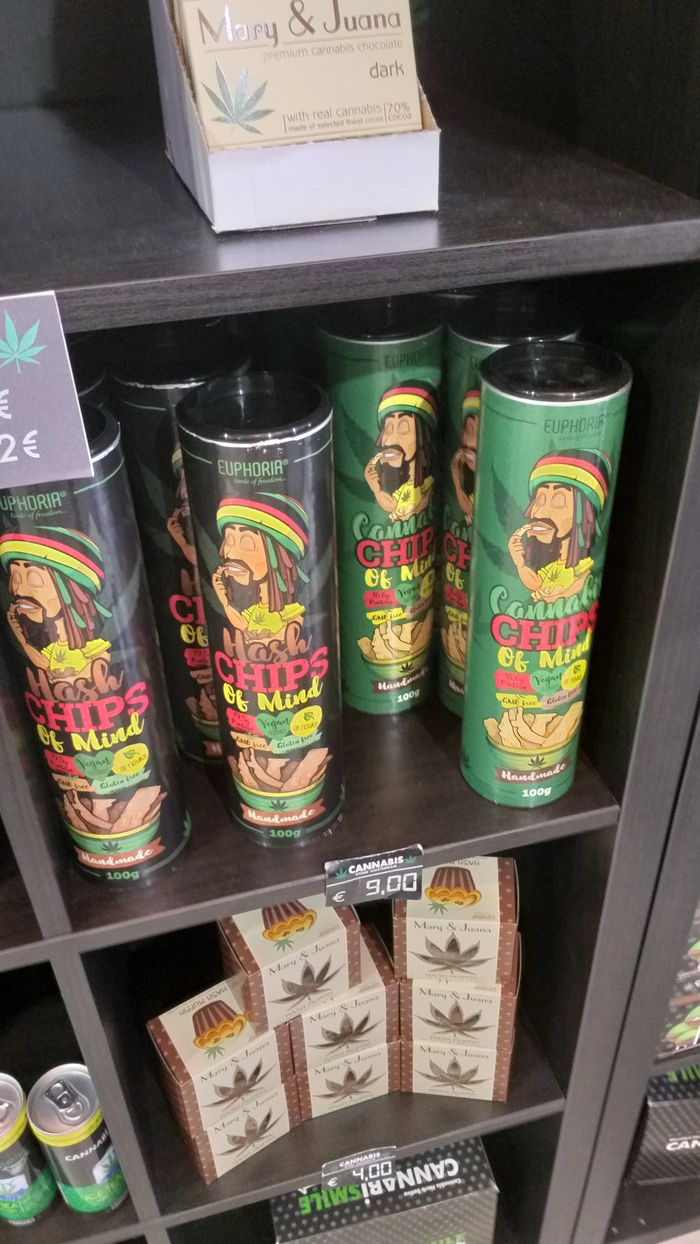 В нем продаются разные продукты содержащие коноплю - Чипсы, печенье, напитки.