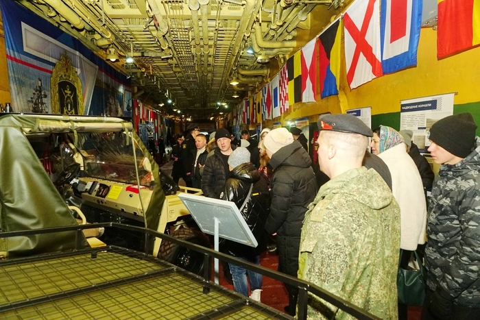Нахимовцам показали системы управления кораблем, вооружение, внутренние помещения и жилищно-бытовые условия.