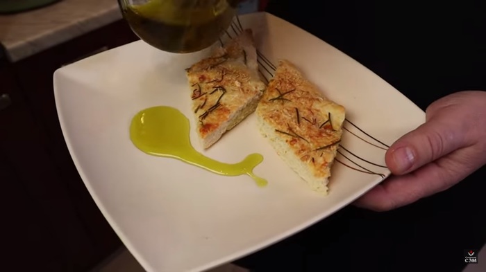 Этот известный итальянский хлеб можно легко испечь дома. Несмотря на то, что это относительно быстрый вариант фокаччи, результат очень ароматен и вкусен. Замес можно вести вручную, тестомесом или планетарным миксером, с насадкой крюк. Общее время приготовления от замеса до готового хлеба чуть больше трёх часов. Я сделал два варианта с разным количеством воды. Оба хлеба получились.