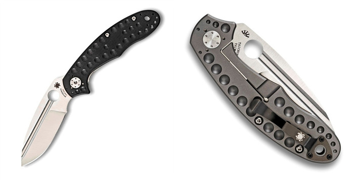 Толстый прочный клинок. Интересен тем, что благодаря подпальцевым выемкам на клинке и рукоятке может удерживаться совершенно разными способами. Можно открывать удерживая за дол на лезвии. В оригинальном исполнении имеет порошковую сталь, что позволяет ему долго держать заточку даже при активном использовании. Имеет чудовищно тугой фрейм, который надо разрабатывать. Ножик тоже весьма странный, но интересный.