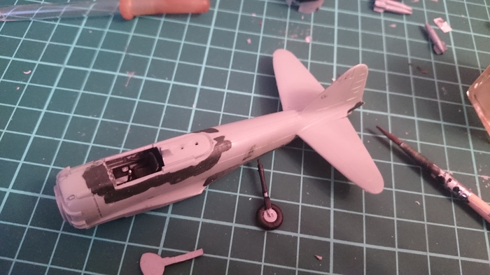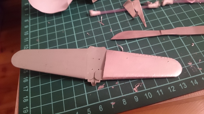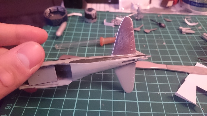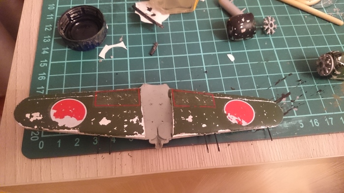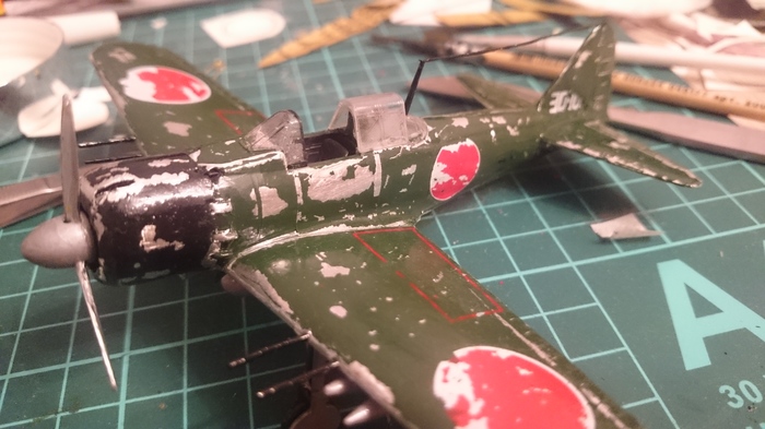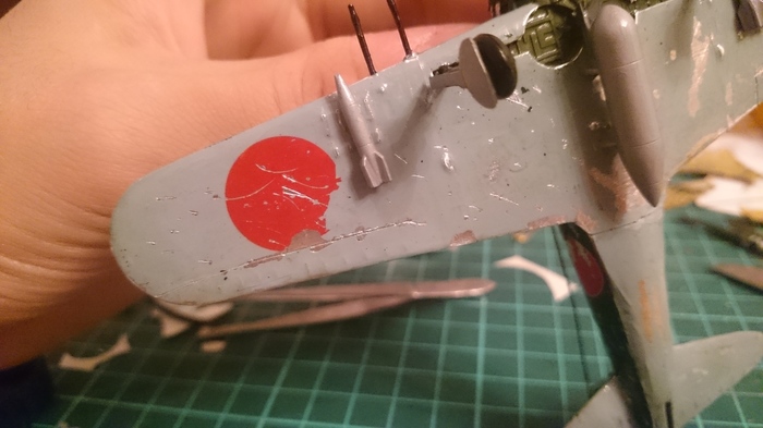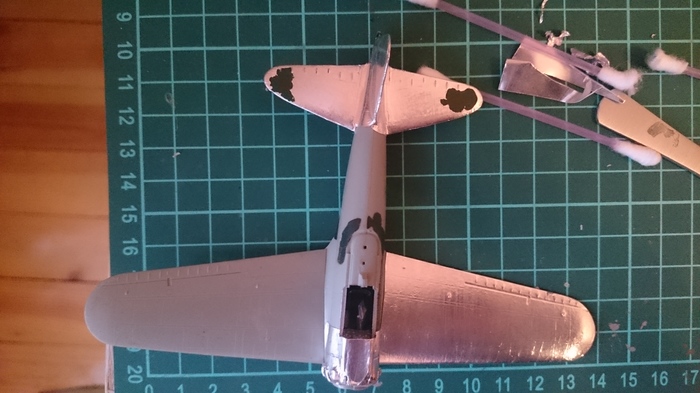 Продавец при покупке рассказал, что от морского воздуха обшивку разъедало, и металл проглядывал сквозь. Тогда я не придал значения, но позже, при сборке, задумался - а как лучше сымитировать металл? Можно было бы конечно покрасить серебряной краской сначала, а зеленую наносить поверх, но, как мне кажется, не хватало скилла. Это моя 5 модель самолета (а техники вообще 6-я).