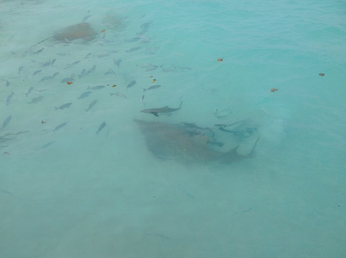 Вот это причины по которым мы выбираем отдых здесь. Кроме этого здесь есть белый песок, много солнца и нескучная на наш неискушенный взгляд подводная жизнь. Дайвингом я не занимаюсь, только снорклинг, но здесь и его хватает. Последние два дня плавал рядом с черепахой, в прошлом году наблюдали бурную жизнь осминогов. Но рифы разнятся от острова к острову, в частности на Ройале риф нам не понравился, на глубину можно уйти только с причала. Здесь же можно, зайдя с пляжа, уйти на глубину через проходы в рифе. Удобно.