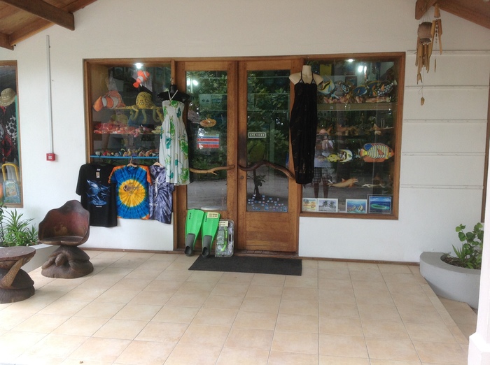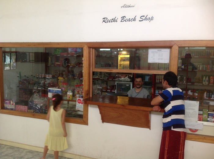 Магазичик для отдыхающих. Есть сувениры, принадлежности для плавания, шмотки. Футболка висящая слева разрисована вручную продавцом магазина. Сам Владелец магазинчика даёт уроки рисования отдыхающим. Товары немного дороже, чем в киоске для работников. Поэтому мы тайком бегали закупаться в стафф.)))
