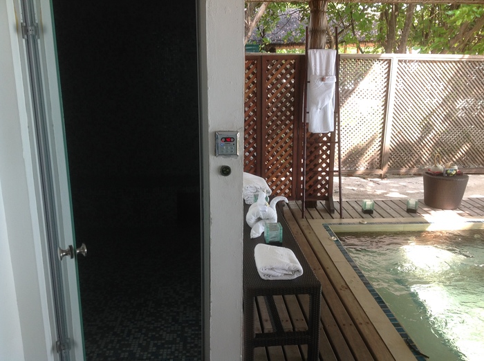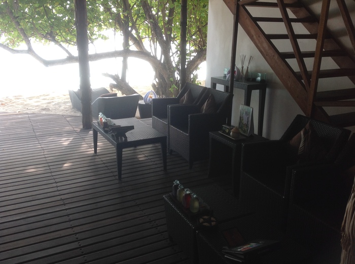 Одна из супевилл в глубине острова. Многокомнатная, таких всего две, остальные однокомнатные. Но до пляжа придется идти через лес.