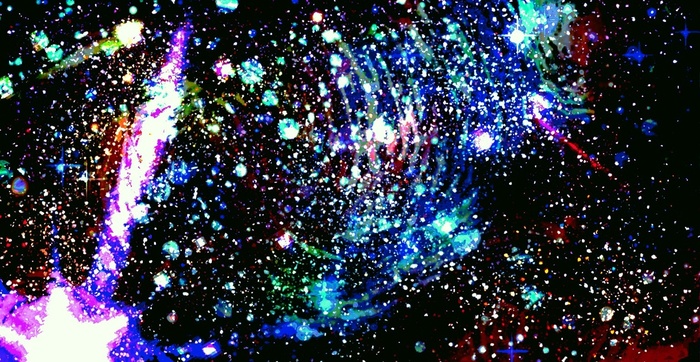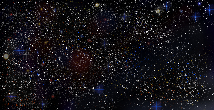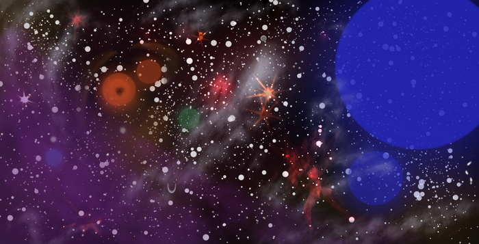 Наверху звёзды и вроде бы висит ещё одна планета или спутник.