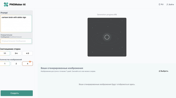 Карты не потребовал. За 7 дней в итоге можно создать 14 изображений. Сервис стоит своих денег. Он качественный, удобный и простой, без лишней траты времени и сил, если вам нужны прозрачные изображения PNG