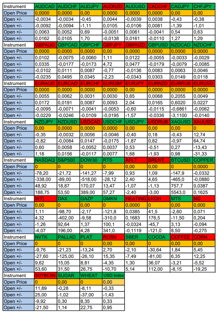 Весь перечень анализируемых активов указан ниже в общем количестве 60 инструментов. Здесь Вы найдете активы рынка Форекс, популярные активы Московской биржи, не менее популярные активы Чикагской биржи СМЕ и мажор криптовалютного сегмента - Биткоин, за которым следуют все альткоины.