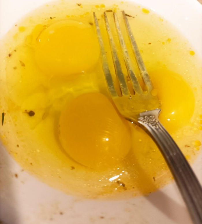 Взбить вилкой два яйца, можно немного соли и специй, но тут главное не пересолить и не переперчить. Умеренность и трезвый расчет. Залить формочки