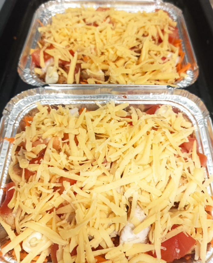 Время сыра. Не много и не мало. От пачки в 200 гр из магазина - 1/3 на две формочки норм. Вот примерно тут еще можно добавить чеснок по краям, как в пицце, но на усмотрение.
