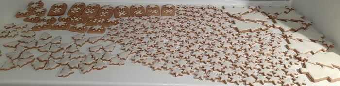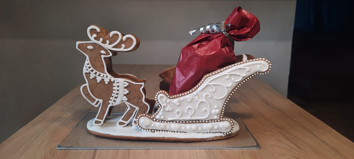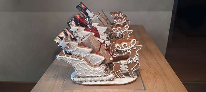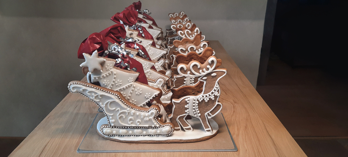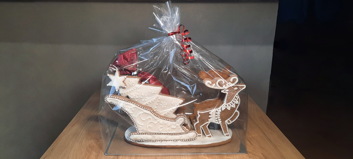 Вес одного подарка около килограмма, размер картонной подложки 15х30 см. В результате за неделю было приготовлено 10 килограмм имбирных пряников.
