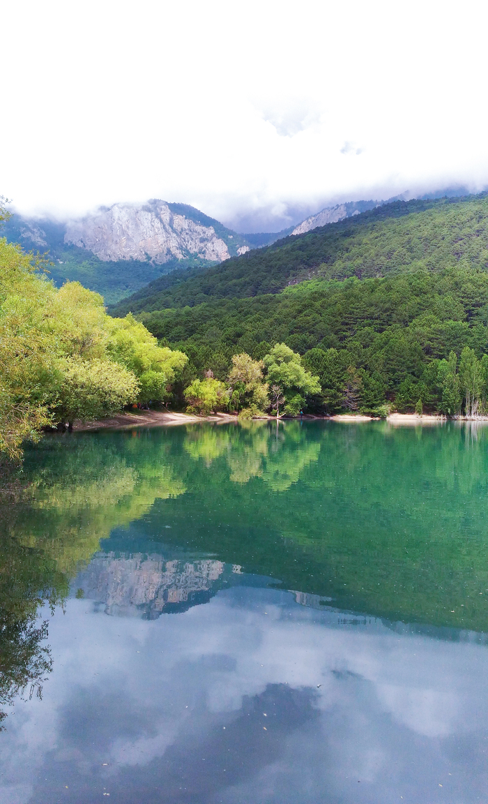 Для любителей прогулок есть еще интересный маршрут к озеру Изумрудному (Юбилейное). Из Алушты ходит маршрутка №103 до с. Запрудное, выходить на конечной. Выезжать лучше по-раньше, так как дальше дорога будет все время идти вверх и по солнцепеку. Мы шли до озера минут 40, каждый раз останавливаясь на развилках, чтобы решить куда сворачивать, так как почти нет указателей. Озеро превзошло наши ожидания. Вода прохладная, действительно бирюзовая, в окружении гор.