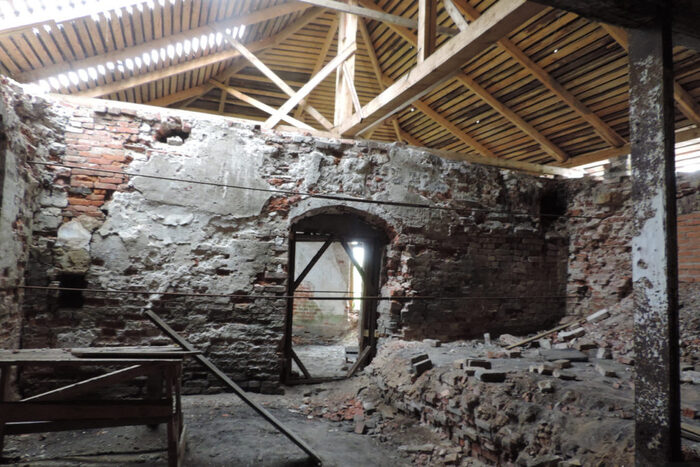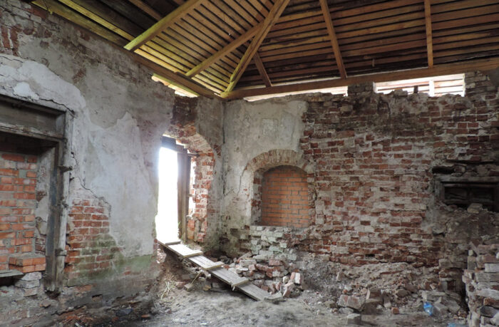 Реконструкция объектов Новодвинской крепости идет только летом, в остальное время работы законсервированы. Доступ свободный, хоть и небезопасный, большинство строений все еще в аварийном состоянии.