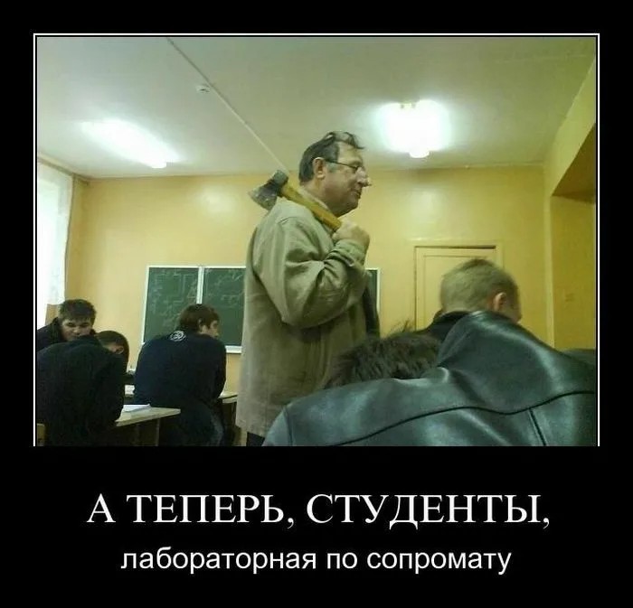 У нас были всякие преподаватели, но преподаватель по сопромату был самый строгий препод в институте, говорят ему даже взрывчатку в стол подкладывали.