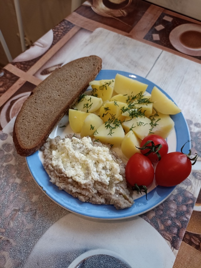 Или наварить картошки, выложить на тарелочку с голубой каёмочкой, посыпать свежим укропом, рядом пару ложек форшмака, сверху подливочку. Подцепить вилкой кусочек картошки, селёдочку — и в рот. Райское наслаждение, «Баунти» рядом не лежало.