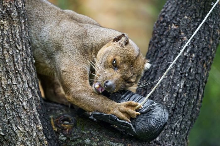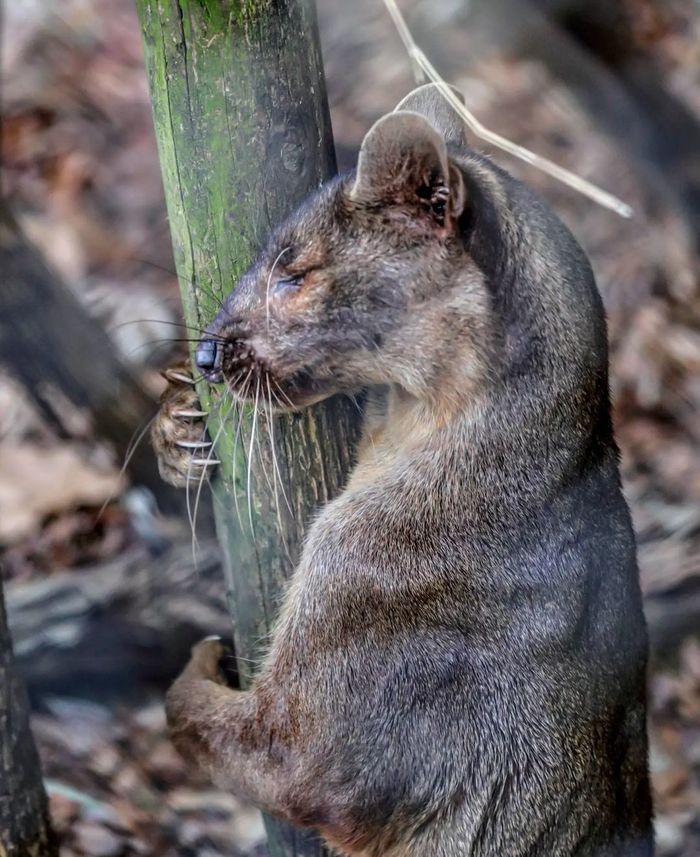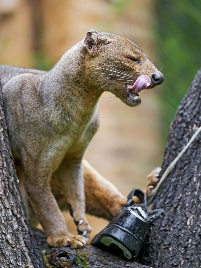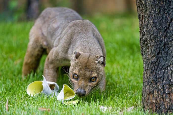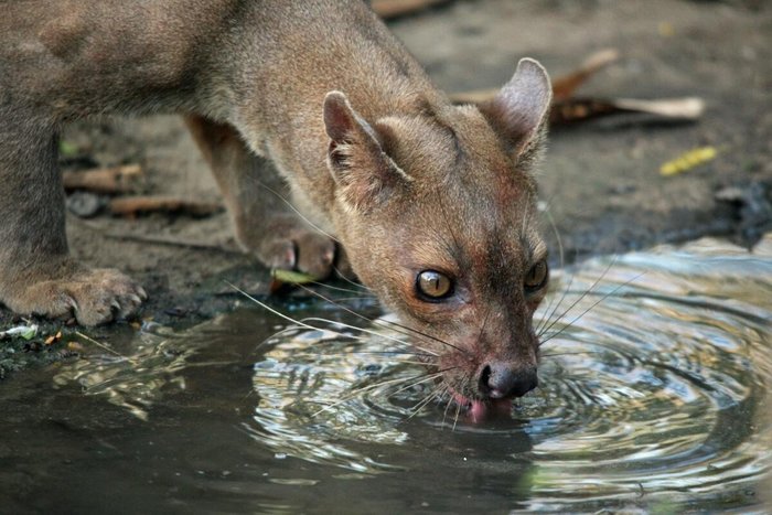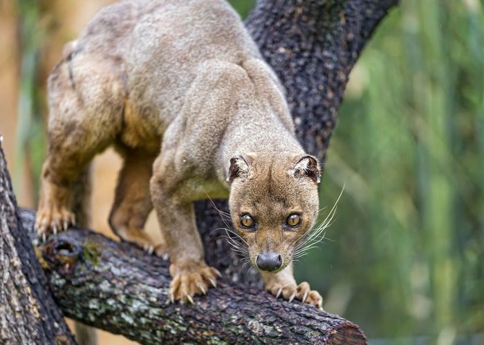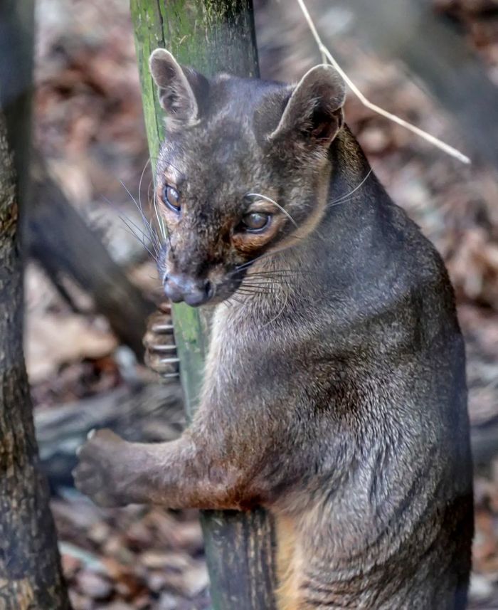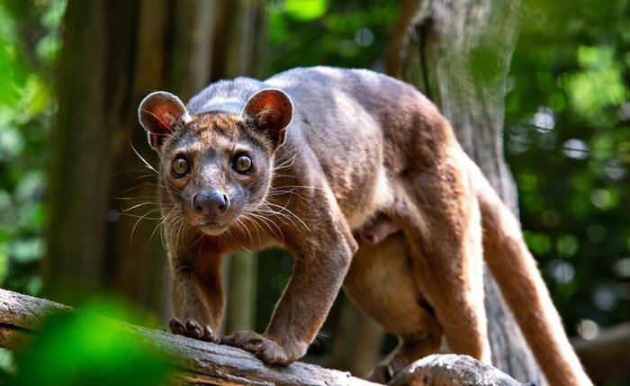 Это фосса — эндемик Мадагаскара, единственное крупное хищное млекопитающее на острове. Ее предки обитали здесь еще 20 млн лет назад.