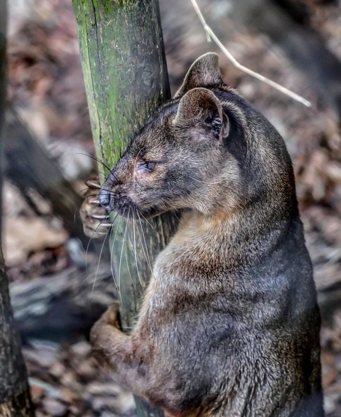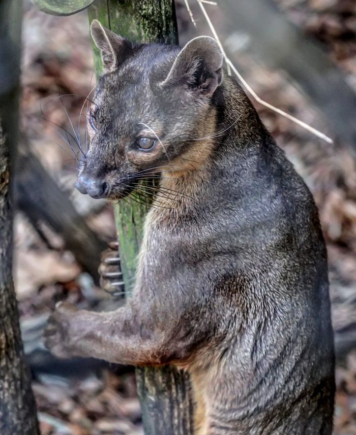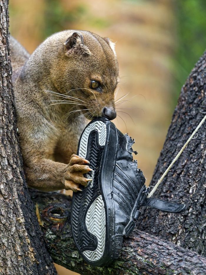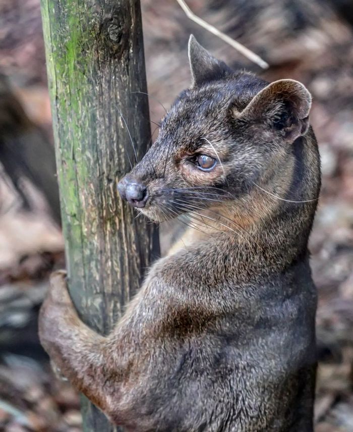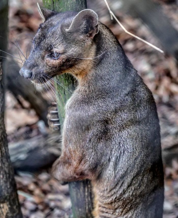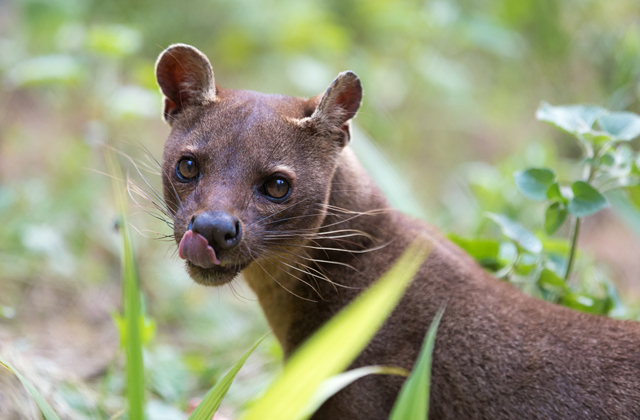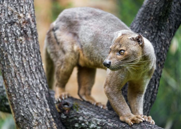 Это фосса — эндемик Мадагаскара, единственное крупное хищное млекопитающее на острове. Ее предки обитали здесь еще 20 млн лет назад.
