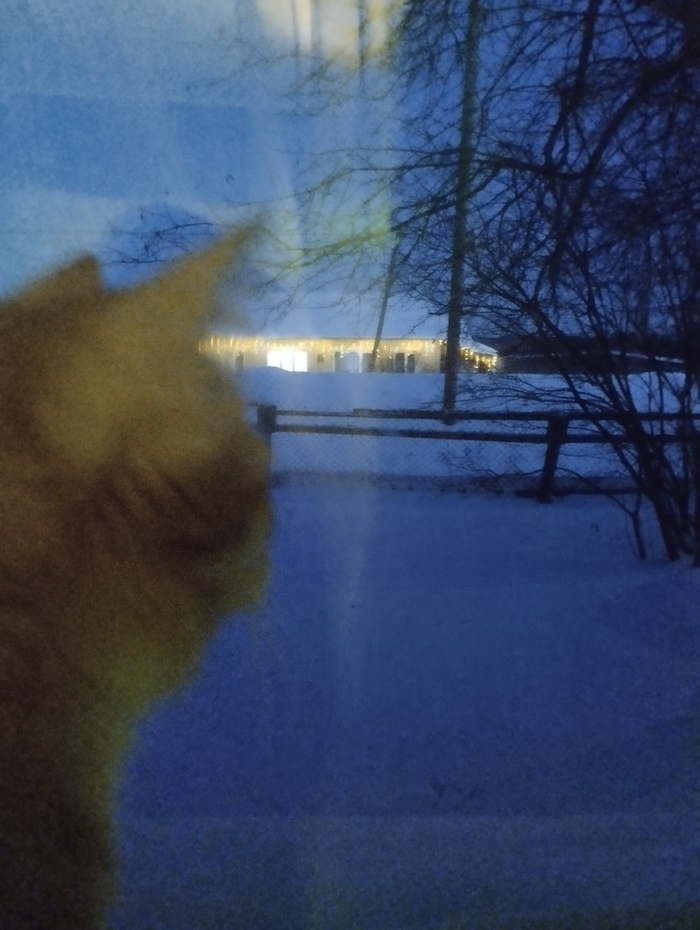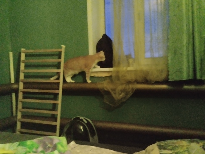 Кот к вечеру немного осмелел и пошел на окно