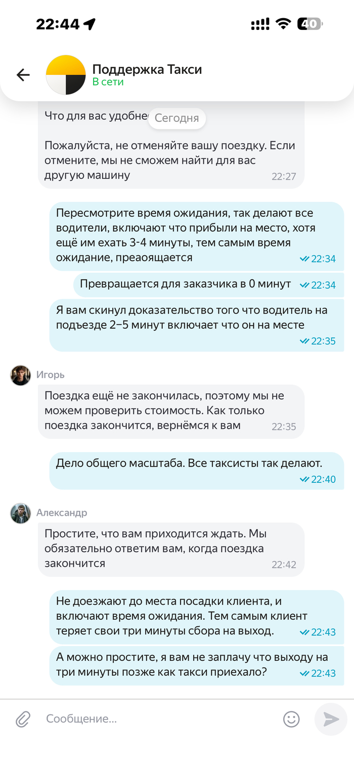 Текста тут, я думаю много не надо. Просто меня лично заколебало такое отношение.Отправил маму на такси. Таксёры за пять минут до приезда врубают, что они на месте,тем самы минуя время ожидания. Т. Е.мы(клиенты) как в GTA должны все ждать такси, и быстро лететь на место высадки. Но если ты не дай Бог, реально задержался дома, тебе минус мороженное. Как то по Пердолински это. Есть конечно, мысль, что таксисты, как и озон чаевые не получают. Тогда это ещё интереснее может развернуться ситуация. 30₽ от 730₽ почти 5%. Мы как обыватели это нечувствуем. А на ярдах которые зарабатывает Яндекс go- это МНОГО))))