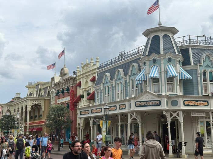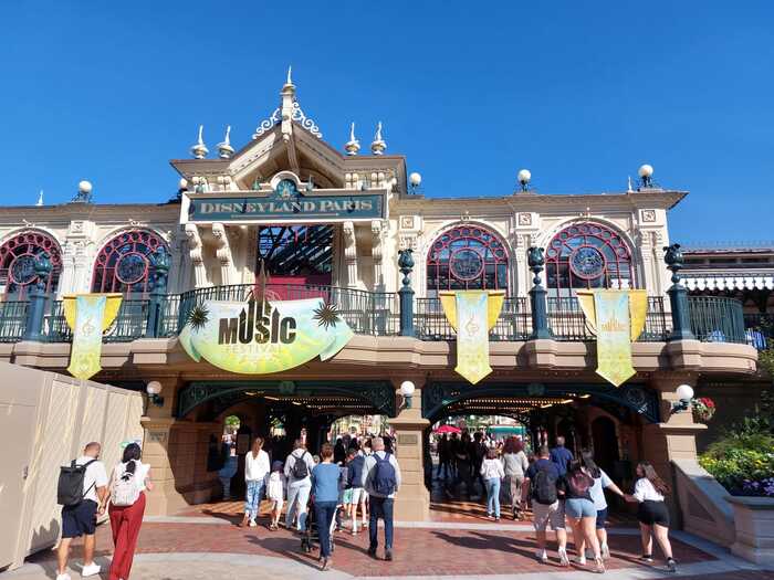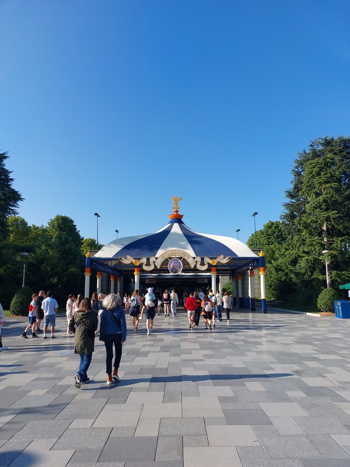 Перед тем, как попасть на главную аллею, нужно пройти под зданием местного вокзала, где теоретически можно сесть на поезд и объехать весь парк по периметру. Кстати, именно там мы столкнулись с не очень приятным моментом – полным отсутствием английских карт парка (не, лотки-то для них были, но пустые), всё было только на французском. В целом-то, я ожидал чего-то подобного от французов, но было несколько обидно. В последствии я ещё не раз убедился в клиентоориентированности этого парка на людей, не владеющих французским языком.