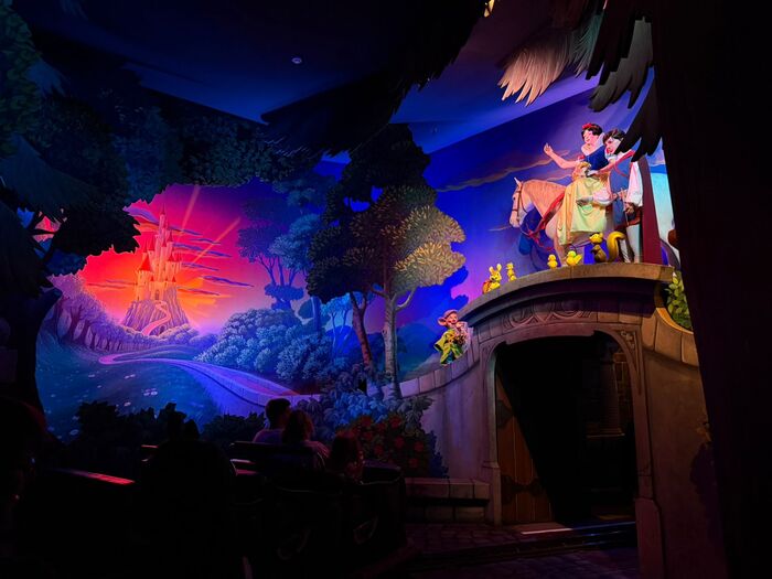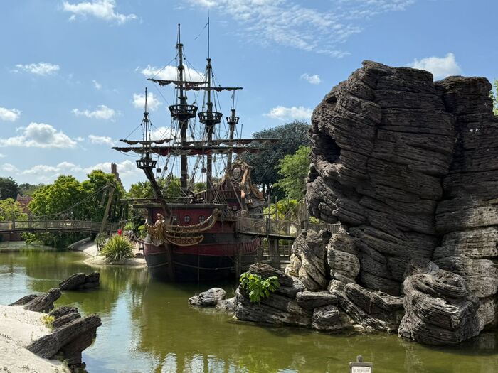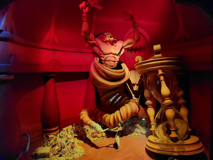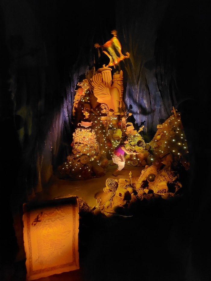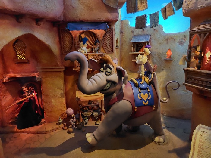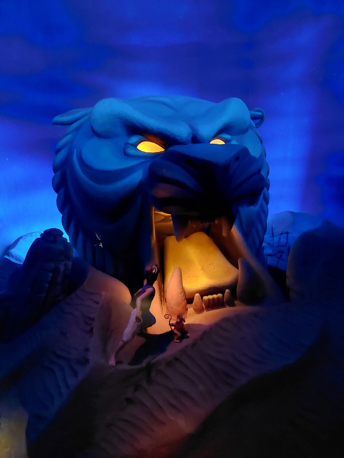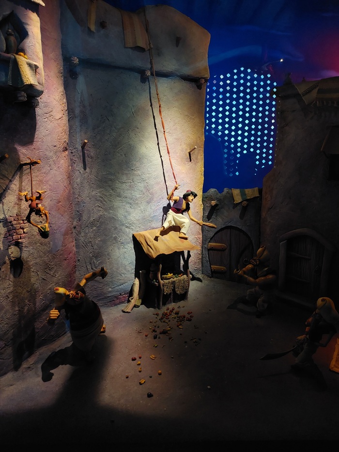 Что меня достаточно сильно расстроило, так это то, что таким мультфильмам, как «Король лев» и «Алладин» посвящено преступно мало тематических зон. По сути, есть небольшой островок в заливе пиратов с отсылками на «Короля льва» и уголок Аграбы с несколькими застеклёнными макетами, показывающими несколько сценок из «Алладина».