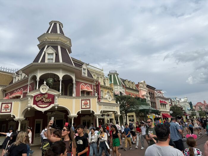 От Реймса до «Диснейленда» ехать было примерно час, поэтому в 8 утра, выпучив глаза, мы выдвинулись в путь. Я очень боялся, что по приезде мы встанем в дичайшую пробку на въезде на парковку, но обошлось. Заплатив на месте спекулятивные 35 евро за проезд, мы двинулись внутрь. Парковка оказалась невероятных размеров, но нам удалось припарковаться практически у, как я тогда думал, входа в парк. Что меня позабавило, так это обозначения секций парковки, обычно это «А, B, C» и т.д., здесь была таже логика, но вместо букв были портреты героев мульфильмов, типа Ариель – А, Бемби – Б, и так далее, мне показалось это очень милым.