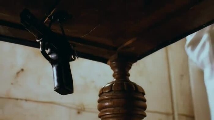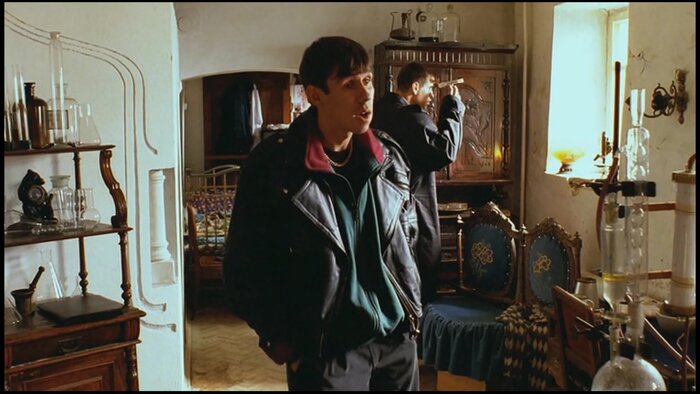 "Волшебники" из кадра. И тот столик с пистолетом, на который упал доктор с пробитой головой. Шкафчик. И....