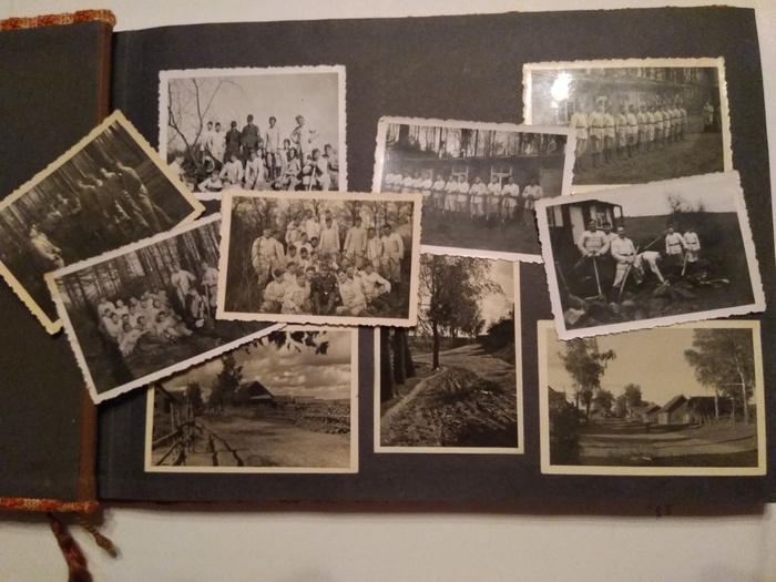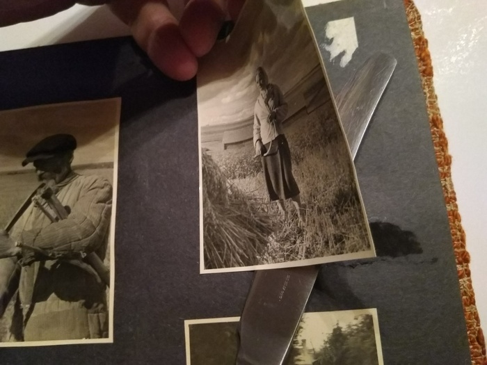 Однако такие фотоальбомы нередко подделывают. С помощью тупого ножа (конечно после проверки ультрафиолетовым свечением и предварительных исторических исследований) отожмём фотографии, которые в немецкой семье не слабо приклеили. Проверим и фотографии сельской местности, фото советских людей. И то и то могло быть выпущено в форме тиражных наборов, что тоже не любительские оригиналы (в наборчиках на реверсе цифры и типографский текст).