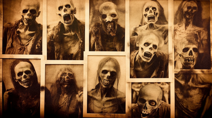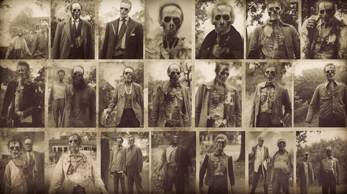 [моё] Midjourney Арты нейросетей Зомби Фотоальбом Мрачное Ужас Длиннопост