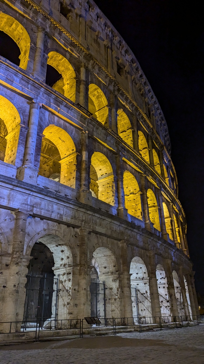 Проснулся примерно в 6 часов утра от шума разгружающейся у церкви машины. На тропинке, по которой я ходил ночью, уже было много бегунов. Однако самой большой проблемой для меня было найти туалет — с этим я часто сталкиваюсь, когда приходится бомжевать. Но я решил её и отправился обратно к Колизею. Там я уже целенаправленно стал искать достопримечательности, не забыв перекусить в лавочке в центре Рима, чтобы согреться после холодной ночи.