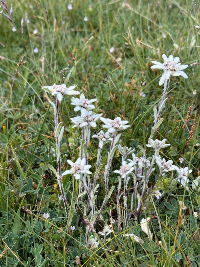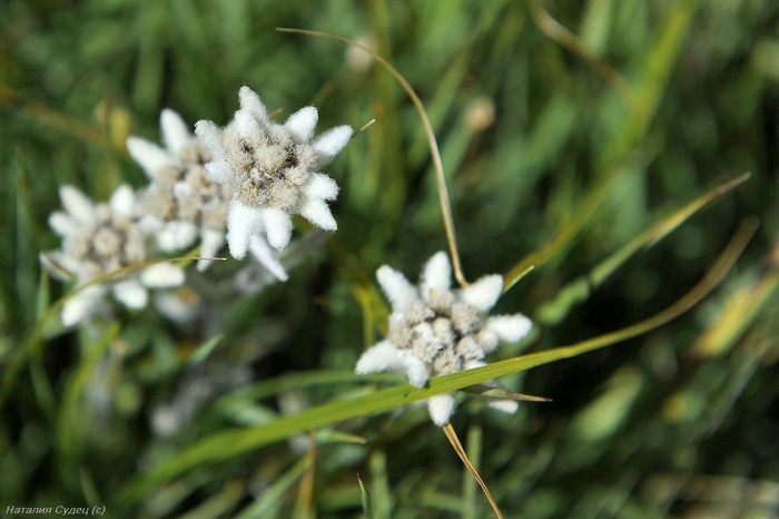 То, что мы считаем цветком эдельвейса — отдельные листочки, укутанные в густые белые ворсинки. А настоящие цветы — это мелкие жёлтые трубочки в центре, которые без микроскопа и не разглядишь.