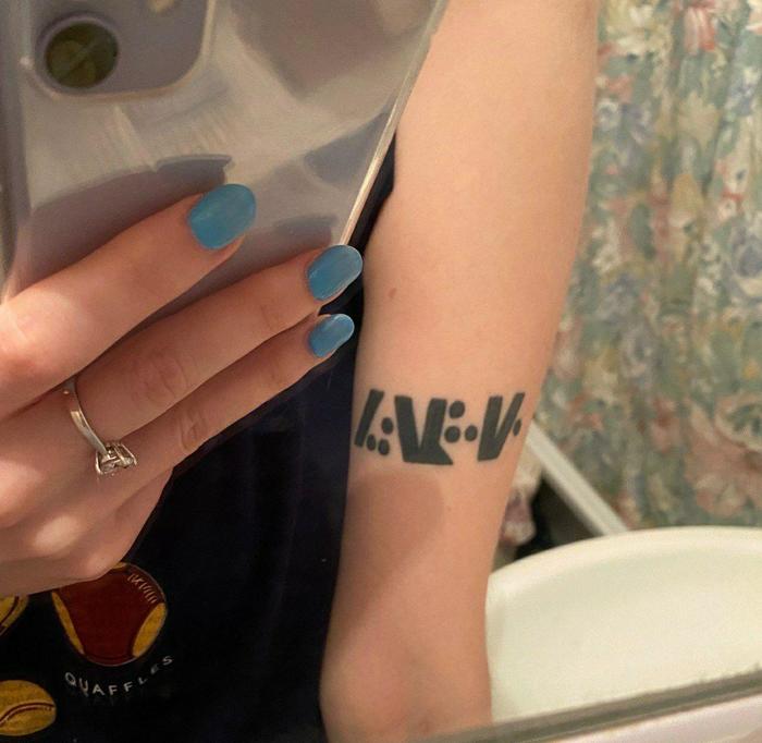 В общем, в чем суть? При общении выяснилось, что у Кати (назовем ее так) на левой руке есть татуировка в виде зашифрованных символов. Значение этой татуировки не знает никто, кроме нее самой (даже близкие родственники не в курсе, что это означает это тату). Итак, вот оно:
