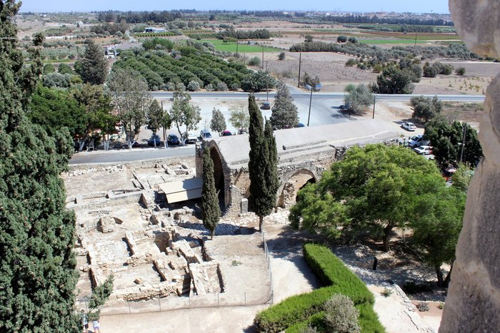 Недалеко от Археологического парка или, возможно, прямо в нем, но сбоку, находится замок Саранда Колонес. У крепости интересная история. Построили ее византийцы в 7 веке для защиты от арабских набегов на эту часть Кипра. Но арабы крепость завоевали. Византийцы ее отстроили, но потом пришлось ее уже им самим демилитаризировать, когда они с арабами договорились о совместном управлении Кипром (вот вообще не представляю себе, как это было возможно в те времена).