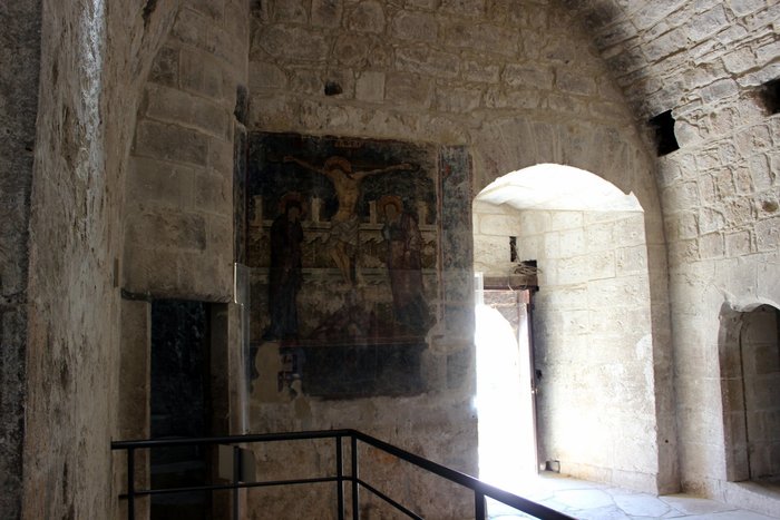 Еще внутри церкви много фресок разных периодов и даже есть росписи на стенах, которые были сделаны при основании церкви. Это был период иконоборчества, когда погибло много икон раннего периода христианства, поэтому там на стенах рисовали какие-то цветочки и крестики.