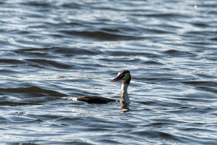 Давно не брал я в руки шашек фотоаппарат. Но вчера утром, проснувшись, подумал, что раз по прогноз обещает последний теплый солнечный день, то надо бы сходить, выгулять технику. На озеро пришел в районе 7:30. Летом в это время (а то и раньше, часов в шесть), уже вся живность вовсю активничает, а сейчас птицы еще не все проснулись. Только лысухи суетятся то там, то тут, да часть уток, разбуженная разговорами людей, приплыла на станцию моржевания (моржи тоже рано приходят купаться, и от них обычно птицам что-то перепадает). А чомг сегодня было только две, и они дрейфовали в центре озера, то пытаясь спать, то прихорашиваясь, то снова засовывали голову под крыло. Но далеко для нормальных снимков. Некоторое время спустя я уж было решил пойти поискать счастья в другой локации, как озеро огласил писк проголодавшегося чомужонка. И рыбалка началась ) Птенец теперь ныряет наравне с родителем, и по расстоянию, и по времени нахождения под водой. Вот только безрезультатно. Пришлось ему, как обычно, выпрашивать еду у взрослого