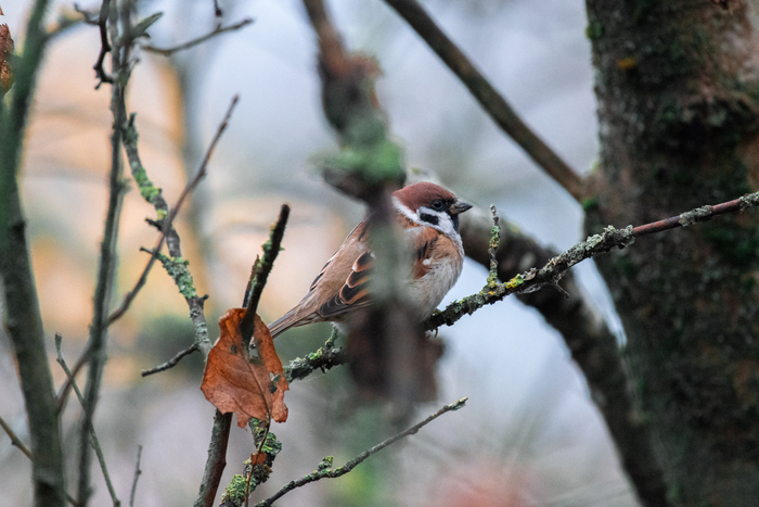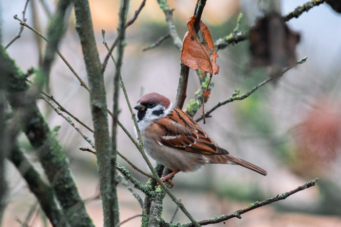 Полевой воробейко. Прилетал к моей кормушке, тусил вместе с синичками. Через речку от кормушки их целая стайка живет, а до меня долетел пока один - и на кормушку не садился (фотоловушка его не фиксировала).