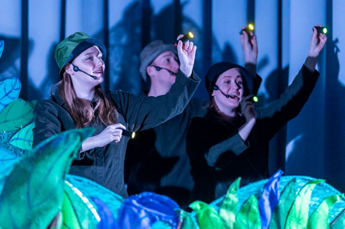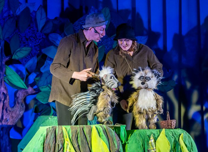 Планшетные куклы проще в управлении, чем тростевые, и эмоциональности им добавляют лица артистов-кукловодов, впрочем, при мастерском исполнении об актёре забываешь. Енот в руках Яны так забавно смеётся, а Дикобраз Андрея при всех своих устрашающих иголках так трогательно гнусавит, что чудо оживления происходит на глазах у зрителей.