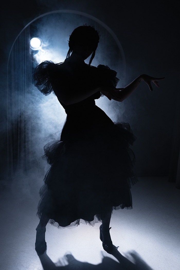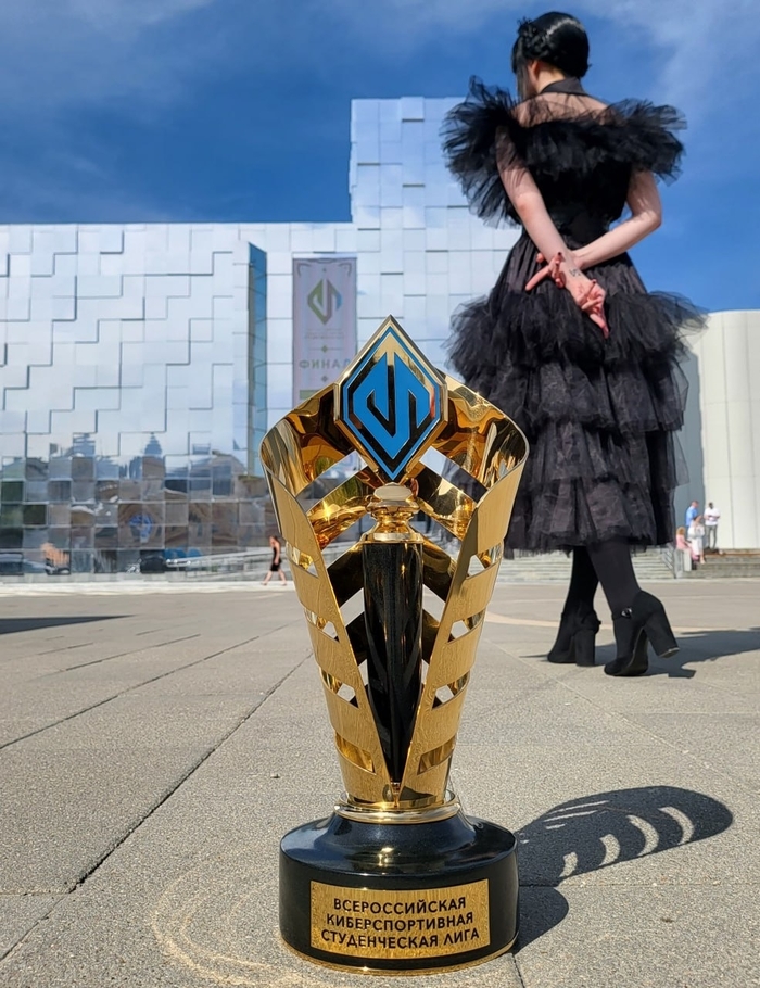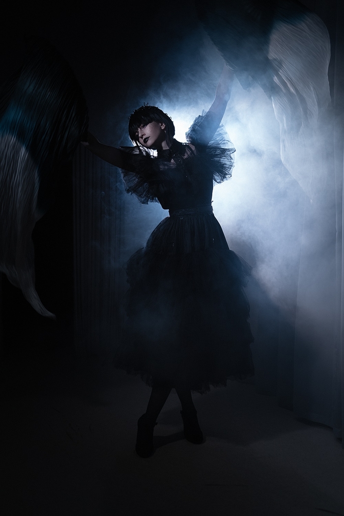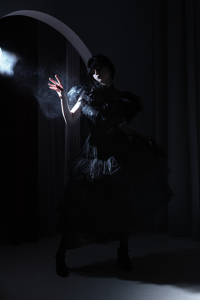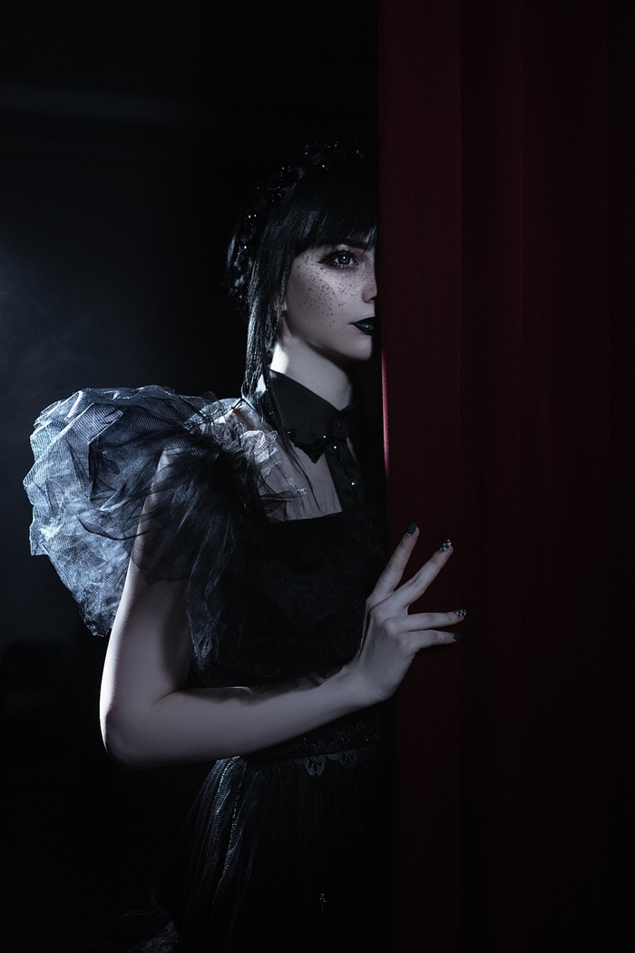Если рассматривать главных героев и моих любимых образов - это Уэнздей по сериалу. Этот косплей был заказан специально к финалу ВКСЛ (Всероссийская киберспортивная студенческая лига). Я совершенно не похожа на Дженну Ортегу, но мне хотелось сделать образ в своём стиле. Много украшений и отсылок.