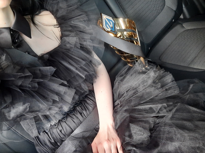 Платье мне приехало утром в день финала, поэтому оно и платье с фотосессии отличается меньшей детализацией.
