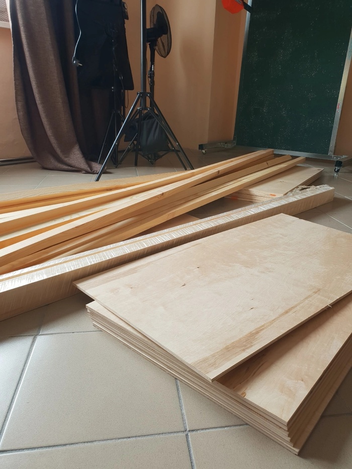 Честно, на этом этапе мы поняли, что продумали далеко не все и чуть было не разругались, споря о том, как нам реализовать этот проект, но нашли компромисс и продолжили работу. Когда инструмент и материалы были куплены, мой муж начал работу над вытачиванием и распилкой деталей, благо тогда наши соседи по помещению еще не сняли комнату напротив студии и мы смогли сделать большую часть работ там, без вреда для студии. Дальше шла сборка, которую мой муж взял так же на себя, а мы приступили к покраске.