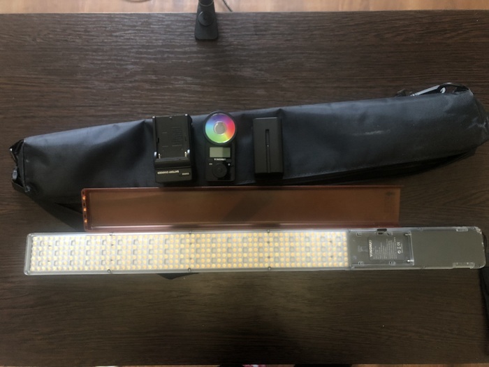 В комплекте было помимо самого осветителя и фильтра, чехол для переноски, пульт на магните (оказывается есть поставки без пульта), АКБ и зарядное устройство.