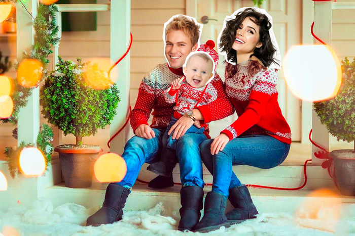 — Мам, пап, а где это мы на фотографиях? Не помню, чтобы у нас была такая ёлка, да и камин будто ненастоящий. И почему мы так странно одеты? Эти свитера одинаковые…