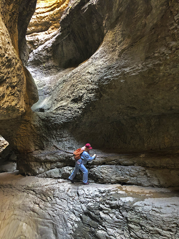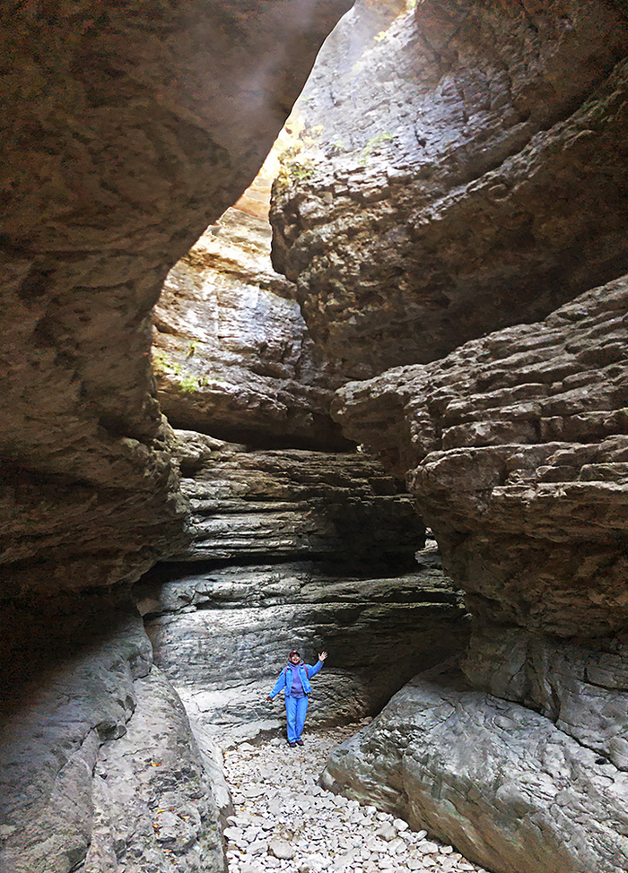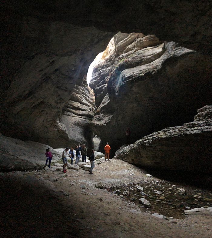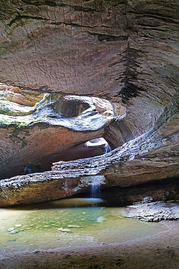 Пройдя извилистые меандры, мы попадаем в саму пещеру со знаменитым подземным водопадом. Этот кадр сделан в мае, когда вода уже появилась, но ещё не бушевала. Говорят, что максимум воды тут бывает в июле.