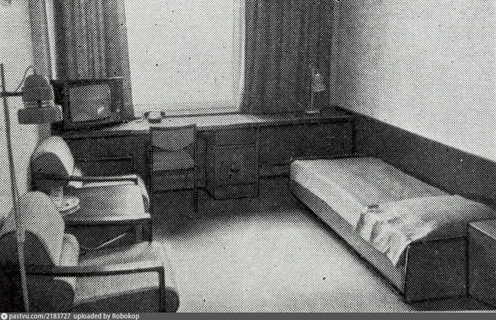 В том же путеводителе пишут, что к внешнему и внутреннему оформлению зданий комплекса приложил руку сам Зураб Церетели. И к оформлению самих номеров тоже. Вот в Интернете есть кадр из журнала "Городское хозяйство Москвы" за 1981 год, полюбуйтесь: