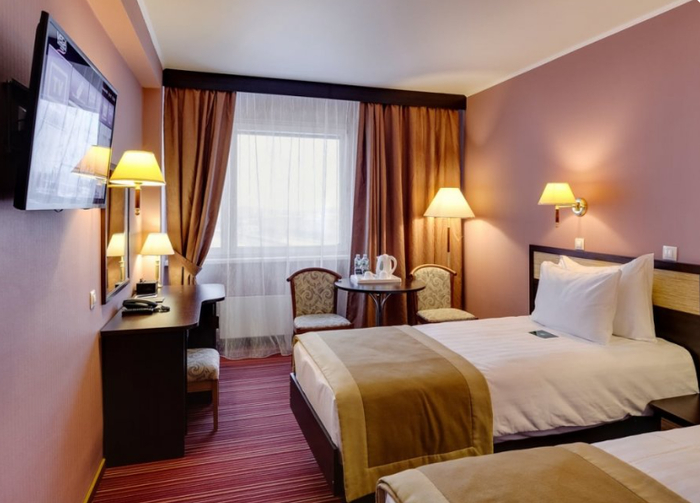 А так стандартный номер выглядит сейчас (можно оценить эволюцию гостиничных интерьеров за более чем четыре десятка лет):