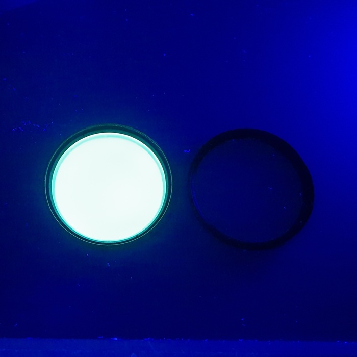 А вот тут уже интересно. Воздействуем в лоб на фильтры ультрафиолетом с длинной волны 365 нм. Правый (кнр) его пропускает, левый (ссср) блокирует и отражает в видимый диапазон