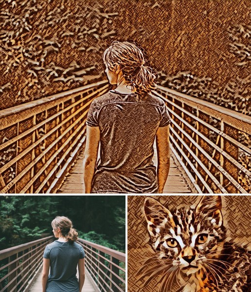 Необычный онлайн-фоторедактор AlterDraw.com позволяет бесплатно создать картинку всего в несколько кликов - достаточно загрузить фото и выбрать стилевое изображение, после чего фото будет перерисовано в стиле стилевого изображения. Доступны настройки, позволяющие выделить людей и передний план на фото, контролировать масштаб переносимых стилевых эффектов, задавать цветовую гамму и накладывать стиль постепенно слево-направо или сверху-вниз.