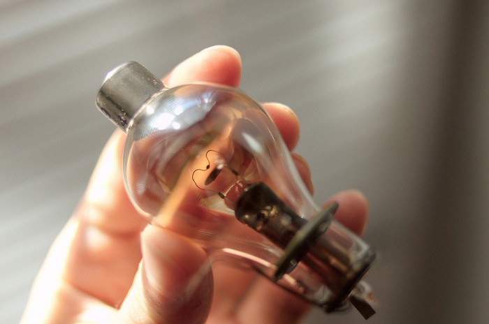 Когда свет через трубку с кварцевым стеклом проникает в прибор и падает на катод, то вызывает эмиссию (выход, но корректнее было бы назвать возникновение) электронов, и в цепи возникает ток.