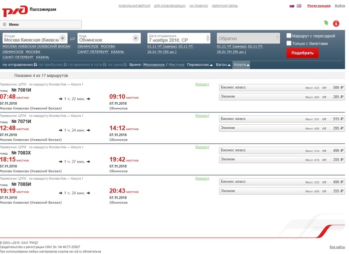 Зашёл я на сайт РЖД, чтобы прикупить себе билетик на экспресс из столицы, до чудного града Обнинска (если кто не слышал, то это первый наукоград РФ и родина первой в мире АЭС) и тут я малость офигел, нет точнее просто упал под стол от наглости РЖД и ее дочек ЦППК, ФПК.