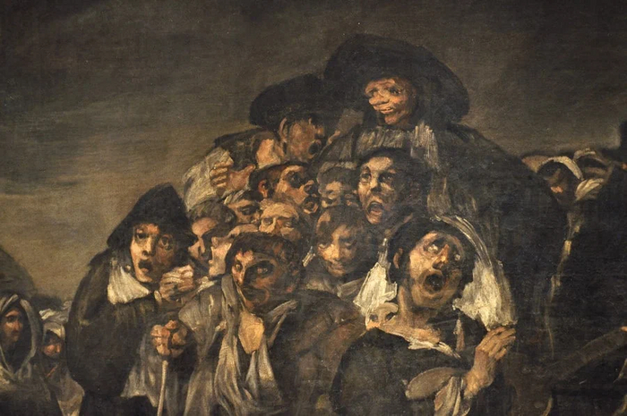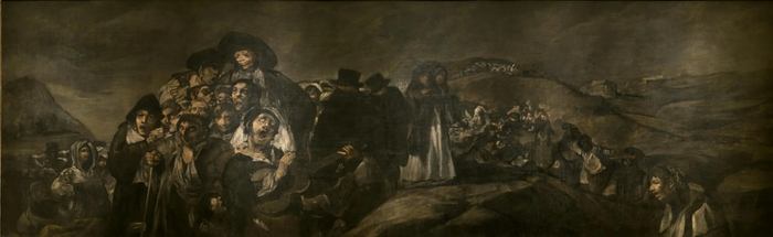 Испанские медики Фернандес и Сева называют предполагаемый душевный недуг Гойи аффективным психозом, Мануэль Парео говорит о депрессивной дистимии, Ноймайр склоняется к диагнозу шизофрения и предполагает постепенное отравление организма Гойи входившим в состав красок свинцом, что повлияло на деятельность мозга художника и вызвало к жизни галлюцинаторные видения. Искусствоведение в этой ситуации может лишь констатировать: действительно, живопись до Гойи не знала такой исступлённой дисгармонии. Именно Гойя первым в европейском искусстве делает нас не зрителями, а полноправными соучастниками адского пира и чудовищных преступлений.